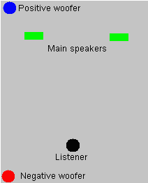 would be set up with the woofers placed near the main speakers, or perhaps in