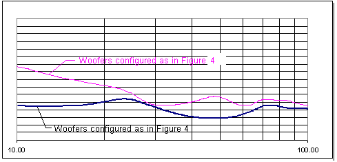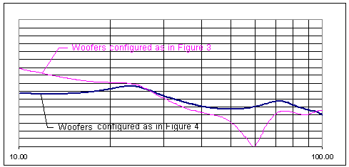 When the woofers are positioned more conventionally, as shown in Figure 3, the