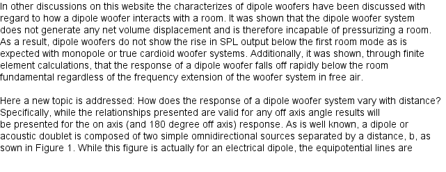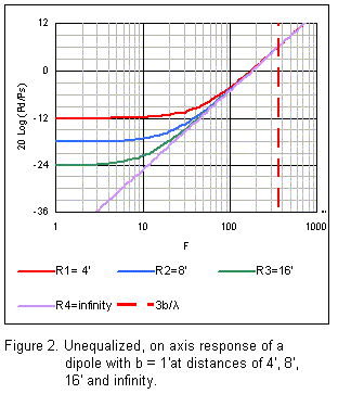 Dipole woofer on axis response in relation to listening distance.