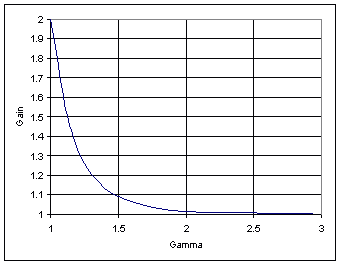 The response plot below again shows the case for γ = 2.582 (300 Hz and 2k Hz crossover points). The