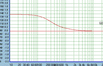 Group delay for n = 4, 3-way crossover. Note the higher DC group delay and