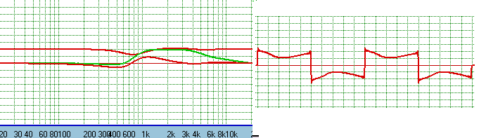 removed. The phase of the speaker is shown in green. The lower red line is the minimum phase for