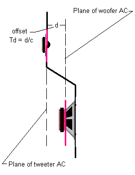 woofer low pass response delay. The idea was that by offsetting the tweeter a crossover could be