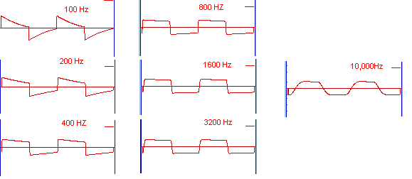 frequency range the amplitude response is flat. The 100 Hz response shows a slanted top and