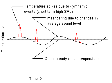 the voice coil temperature will meander about this quasi-steady state value reflecting the changes