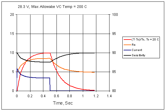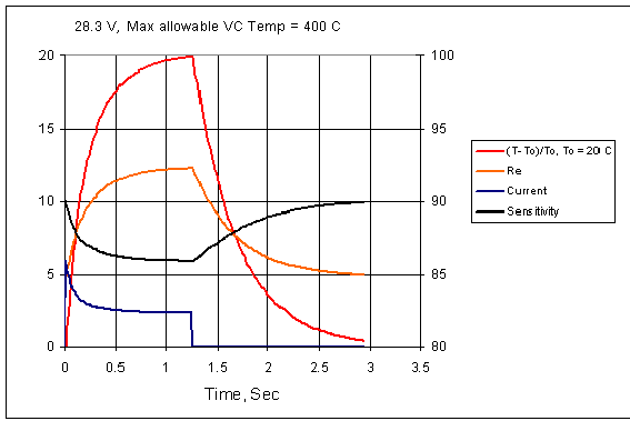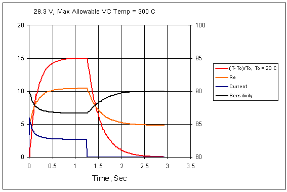 that the VC temperature can not follow the power variation and the temperature remains very nearly at the quasi-steady value. Sensitivity and VC R