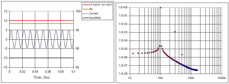 This last "correction" terms shows that if Re doubled in value due to heating during a dynamic event, the sensitivity