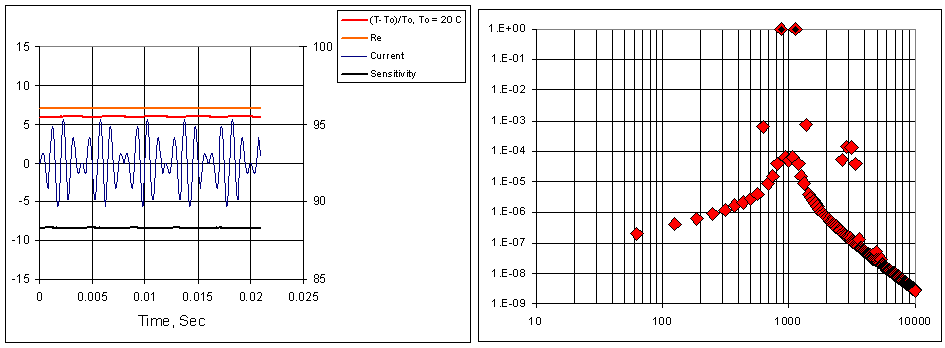 driver sensitivity also follow temperature. While there is no change in amplitude form cycle to cycle the plot to the right shows that there is harmonic