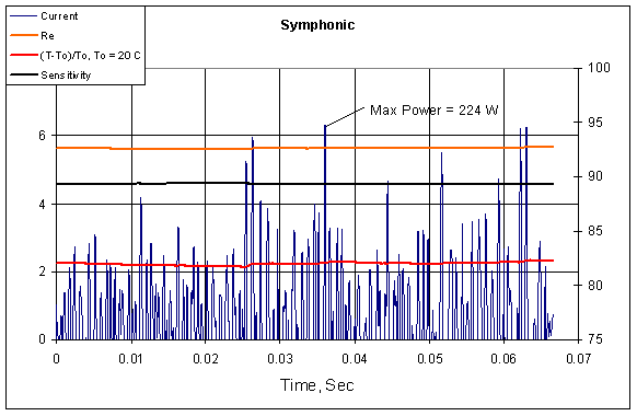 in the voice coil temperature and resistance. Over a long time the voice coil reaches a quasi-steady temperature for