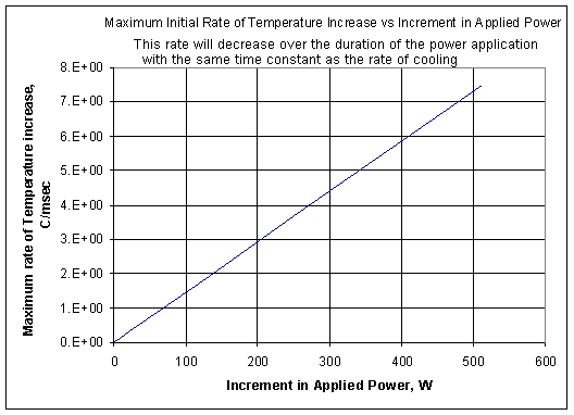 then the maximum rate of temperature increase would be about 1.5 C / msec. This maximum rate would only exist at the instant the power