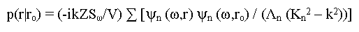given knowledge of the modes (and Λn and Kn ) the pressure at r from a source at ro may be found as