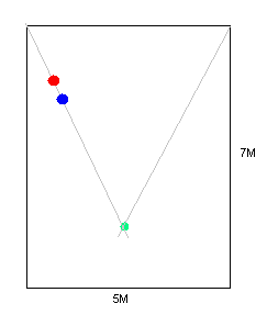 the side wall, 5M from the wall behind the speakers and 1M off the